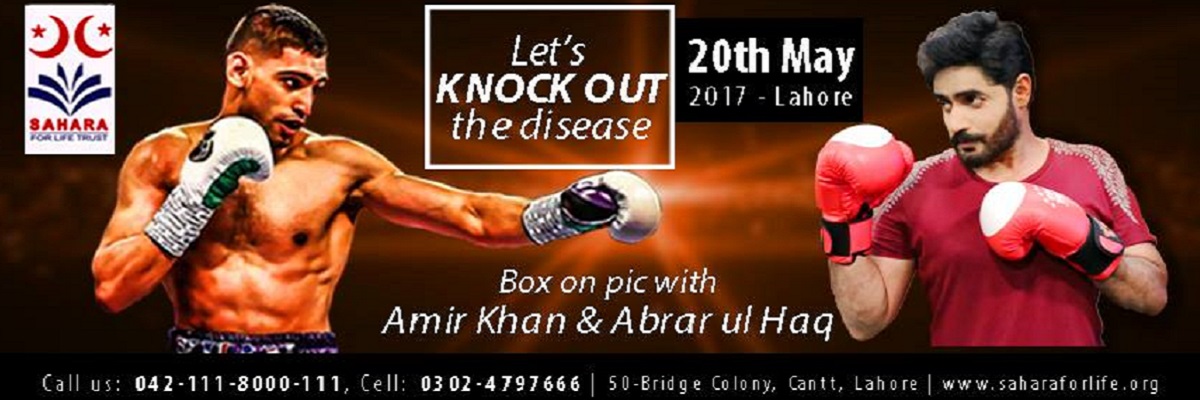 Sahara for Life Trust presents Sahara Night on 20 May 2017. Sahara Fundraising Dinner offers an opportunity of Box on pic with Amir khan. People in Lahore and nearby cities get ready for Music with Abrar Ul Haq. Other celebrities will also be there for the noble cause. Let's Knock Out the Disease.